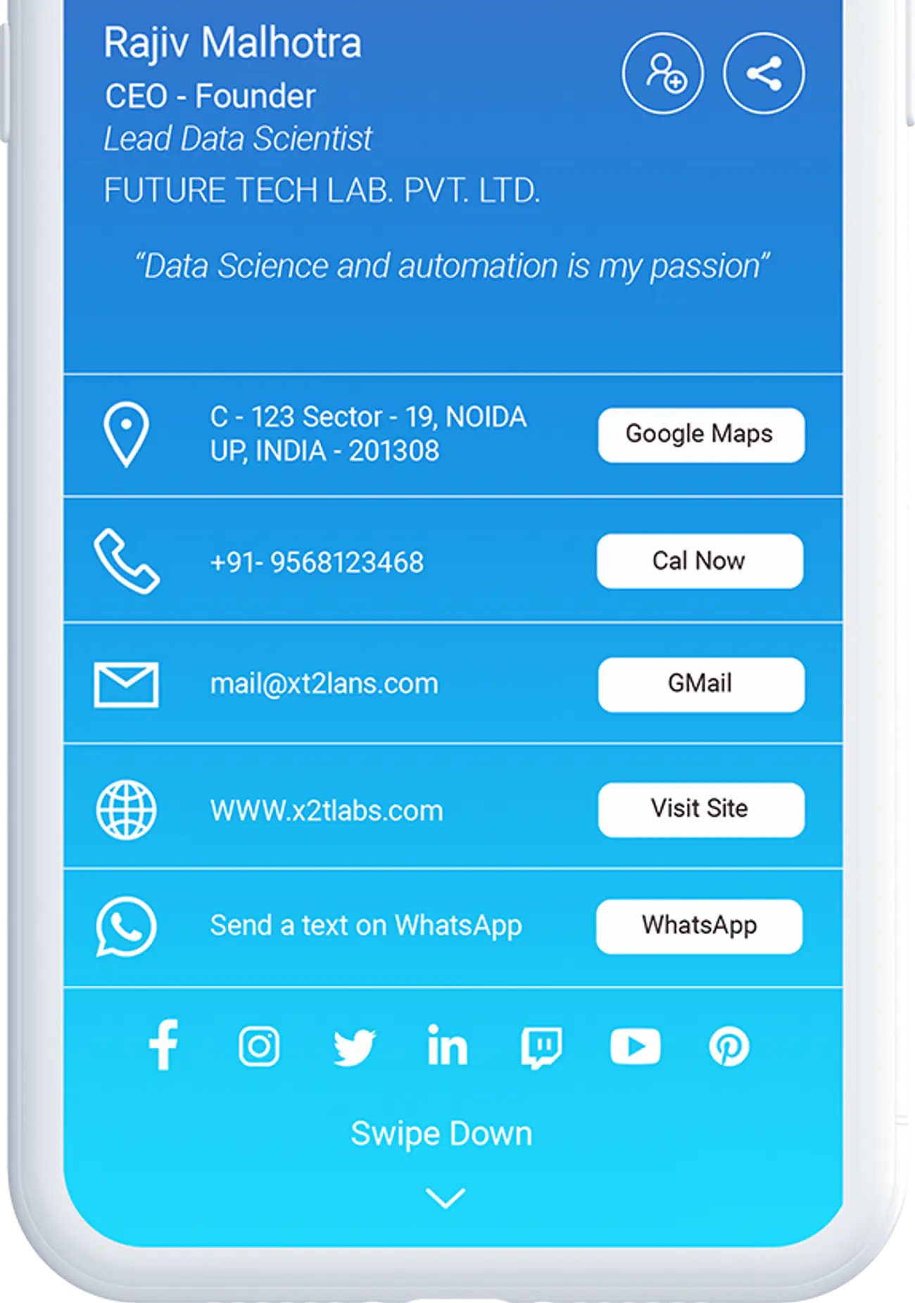 Quickly share your social media profiles and links to the world.